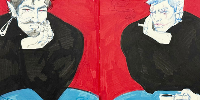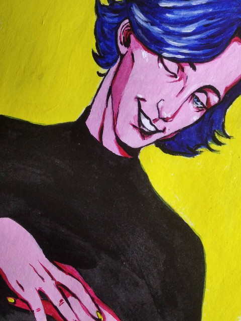 #boy #face #glove #mirror #pendrawing #portrait #profile #purple #reflection #smoke #smoking #boyportrait #felttipsdrawing