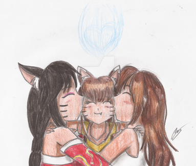 Hehe, I bet Ahri usually holds back, so Ruri looks like a very powerful kitsune, buuuut she's actually the second most powerful. Even Ruri might believe that she's stronger than Ahri, up until something happens and Ahri shows the world what she's really capable of...not that it actually matters who's strongest, beyond idle curiosity, and their greatest strength would actually be in the ability to fight together, play up each other's strengths and make up for weaknesses.