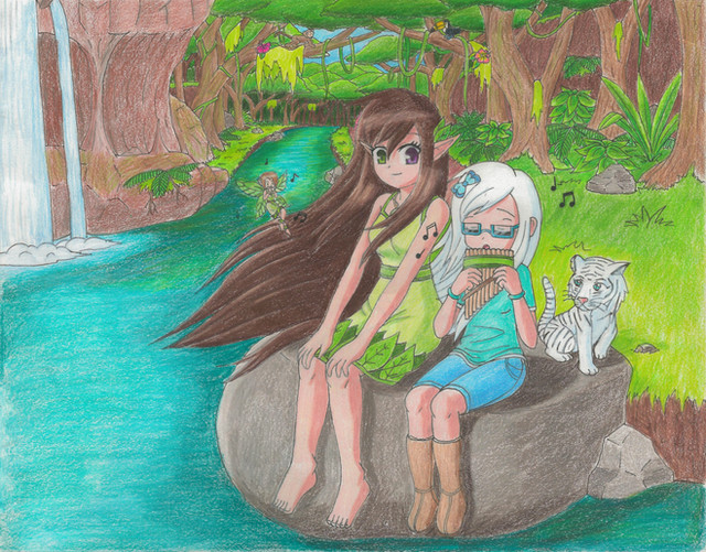 I love how much purple you added to her appearance, too, aside from just the magic. The green gem is also really cool, all the little details you added--especially all of those flowers!--are really impressive.
