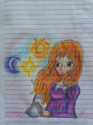 I really like her clothes, but her hair alone is very majestic--and I like all the little flowers in it. The fox face on her skirt is really meaningful to her role as the foxy queen and the hearts would indicate her benevolence. And I really, really like the gold on her cape, that symbolizes her sheer awesomeness! Umm, if the magic didn't tip anyone off. XD