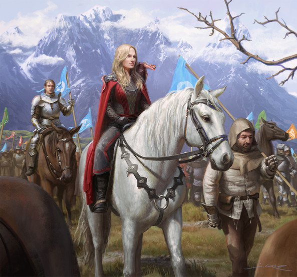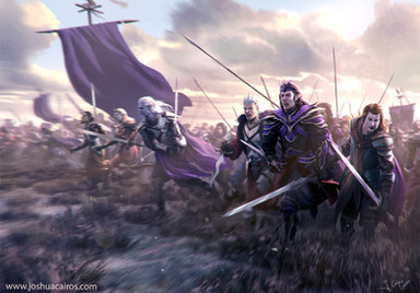 Aside from the obvious technical skill involved in producing this digital painting, I love the design of the guards' uniforms. They are reminiscent of both the Dragon Age game series and the Lord of the Rings movies, without being obviously derivative of either. Very good work.