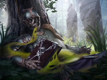 If I remember correctly, I think this is the first time I've seen jungle artwork in a Middle Earth setting. The artwork itself does a great job conveying fear and despair, especially in how this fellow clutches that scroll and his hair.