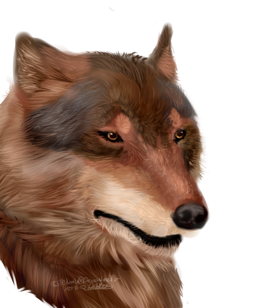 I am much more satisfied with the result! Of course, it is a completely different style and I have taken a different model in terms of colors (a photo from a wolf calendar ), so the comparison is difficult. In addition, the proportions are not quite right (for example the eyes would have to sit for my feeling lower and be smaller to look real). But I like it and I feel much more comfortable with it.