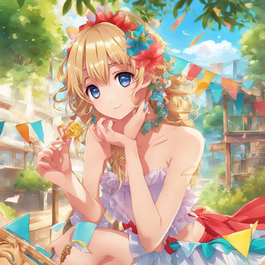 #ai #animestyle #beautifulgirl #blondegirl #digitalartwork #fantasyartwork #festival #guitargirl #musician #aiartwork #stablediffusionart