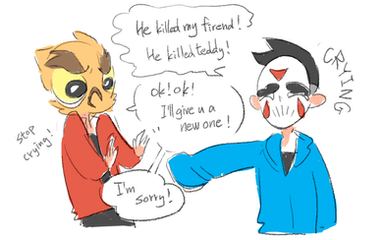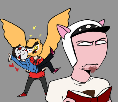 Forget it, just please do this request: Moff X Irving (Harvey Beaks) how I want their looks: vignette3.wikia.nocookie.net/b… . They should blush, I also want Moff's eyes to be revealed when he kisses him, with an eyeshadow under his eyes