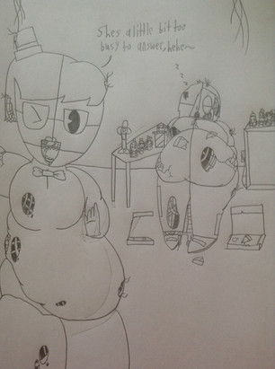 Seems Funtime Chica is having more fun than usual, and Lefty Aiden is having some troubles of his own....wonder what it could be?Challenge made by BellyQueenSupreme