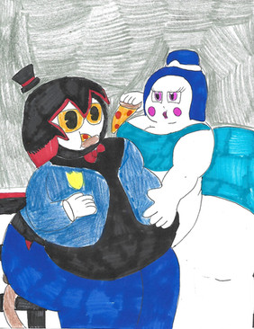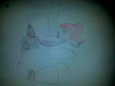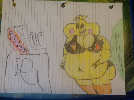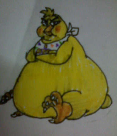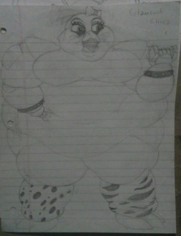 I'm used to drawing chica in the human form.....it was very awkward when not drawing her that way....OH WELL!!!mendythefatinkdemon