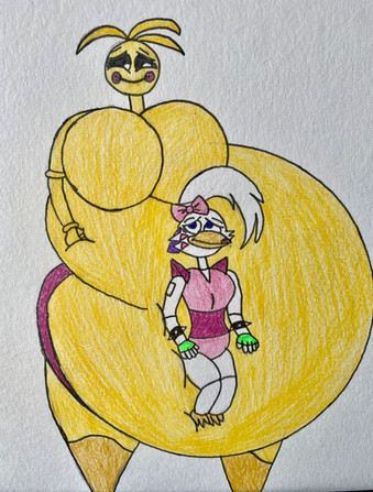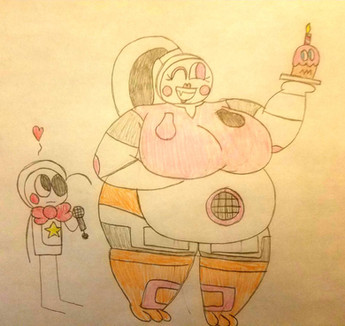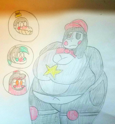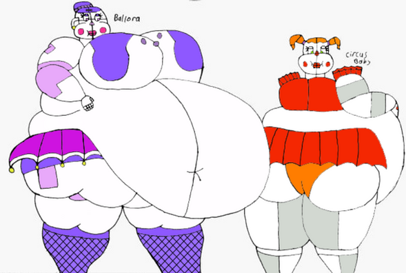 Me: *blushes deeply and in my mind" toy chica is a sexy fat chicken but baby is a cute fat clown...oh dear! O~O"* ummmmmm bo....both