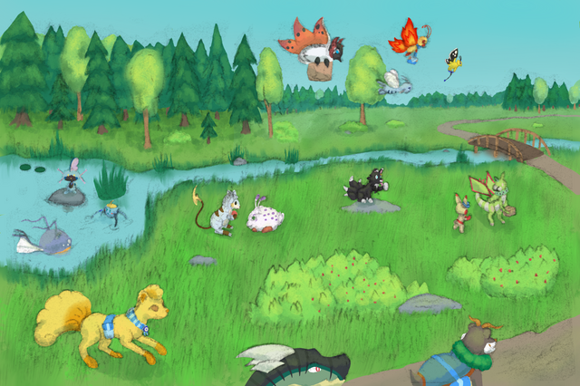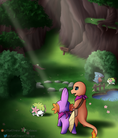 #eevee #pokemonmysterydungeon #digitalart #pokemon #background #charmander #field #landscape #marshtomp #nature #pmd #pokemonoc #scene #snorunt #pmdoc