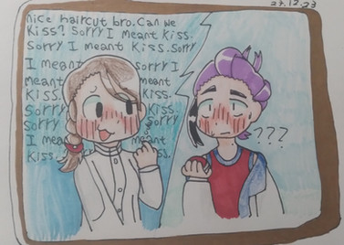 just being silly between working on artfight stuff. i think they should kiss in the next mysterious stones chapteri cannot draw intertwined fingers unfortunately