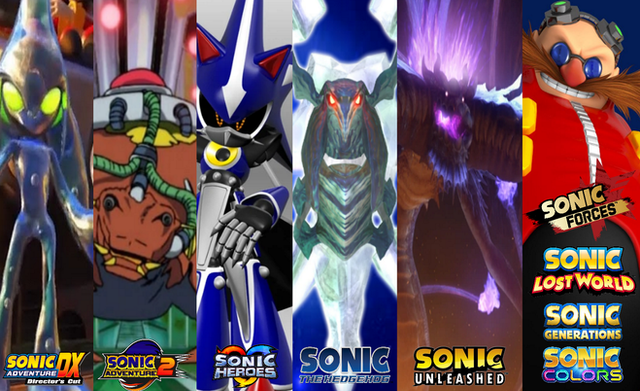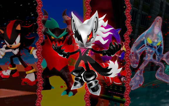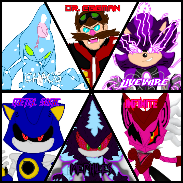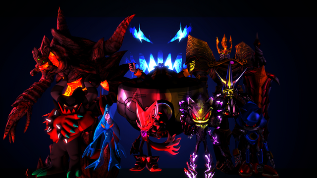 Sonic's strongest foes teaming up to fight against Sonic.Nazo, Metal Sonic, Mephiles, Infinite, and Scourge.