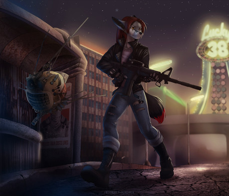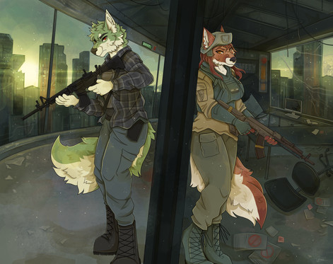 #car #fenale #furry #gun #m14 #male #town #wolf #zombie #postap #m14ebr #postapocalyptic