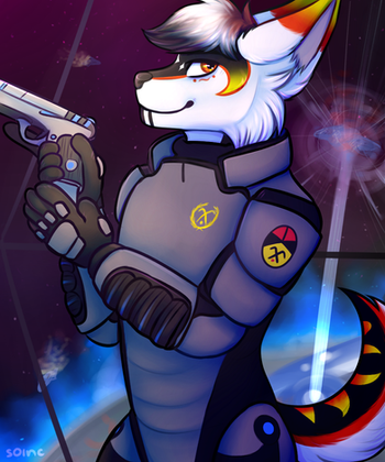 #canine #coyote #fanart #firefly #gun #male #space #spaceship #furrymale #jaynecobb