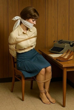 Andrewtaterizz - A lady detective on a chair tied up with her arms [🤖]