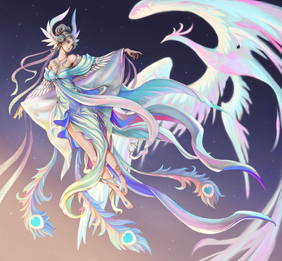 Omg! This is so pretty ~ I love how you did the peacock tails in her hair, and everything! makes me jealous this isent my character ~ > u < <333