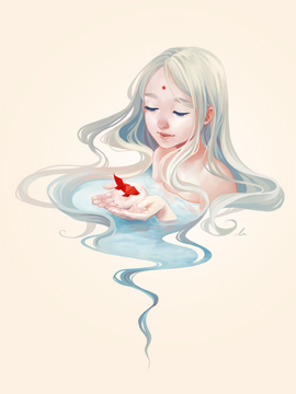 I wasn't going to comment because I r shy as hell, especially when it's a reeeally good drawing, but skjfhskjdhf. I couldn't resist! This is so beautiful~ I love the shading and lights in the girl's hair, it really gives the hair a flowy feel, and I liked how you blended the colors in it, too~. And the skin, sjkfhsdkjh. ;n; So perfect! How do you do to get that pretty watercolor effect?