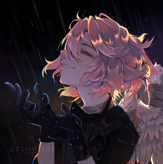 I like the look of these unfinished-like forms of these birds (I guess that's what it is) and the style made by just solid brush strokes that gives the image look like real painting. Even tough I don't prefer anime, which had some influence in this work I guess, that piece of art goes into my favourite list. Lovely work.