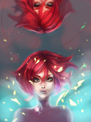 I love your art so much! Is so delicate and the colors you choose are simply perfect! Love the contrast between the hair and the environment and the little green sparckles!