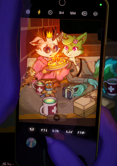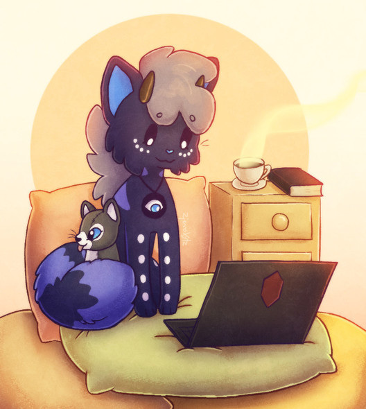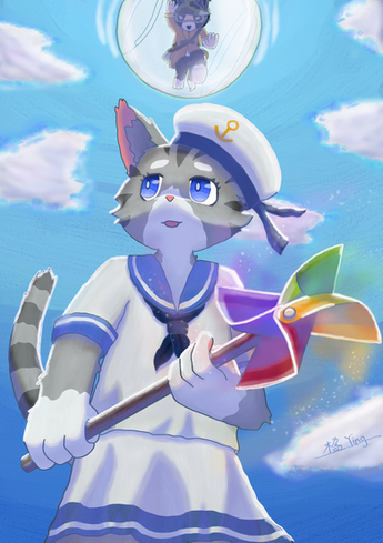 #anthro #background #cat #collar #feral #flower #fur #furry #gla #grey #hat #horn #ipad #male #pen #scarf #sses #tablet #blue_sky #superanimalroyale