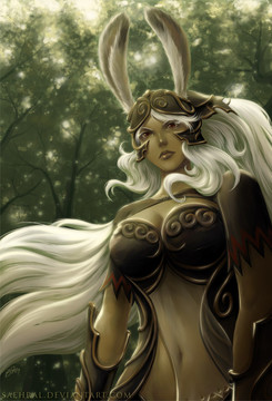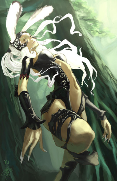 Cute picture of Fran and a bunny. ^^ Hubby stared playing this again and I was looking for fanart. She's my favorite chara from FFXII.^^ I like the choice of yellow and white background since it brings more attention to her and her expression is so serene.