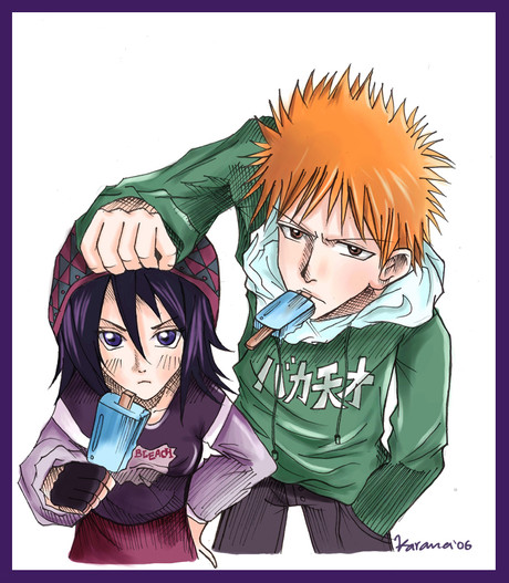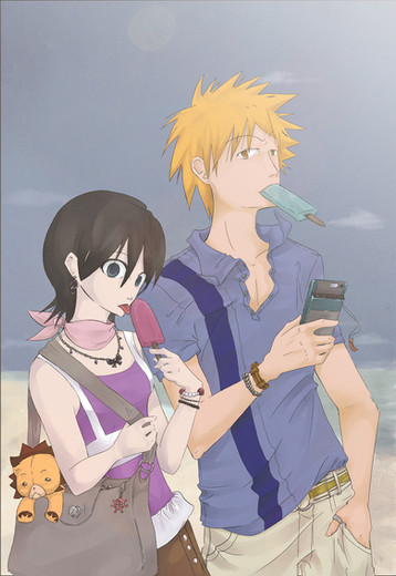 1st in a set of 4 bookmarks I sold at CNA >> Just Rukia, Ichigo, and Renji enjoying some ice cream in the hot summer heat~ XD Hahah...chibis are so much fun to draw.openCanvas