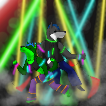 Here is your character Jagger, and my character Malaika raving together. Hope you like it.