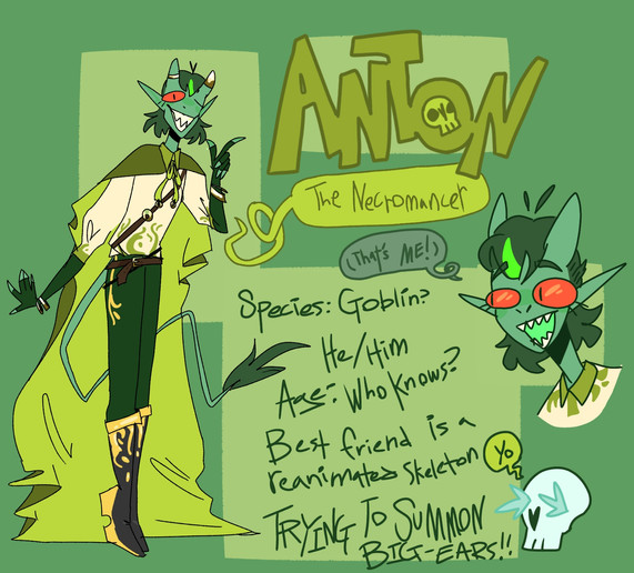 Species: Reaper/ Necromancer (but overall he’s pretty much just human that can turn into a skeleton person)