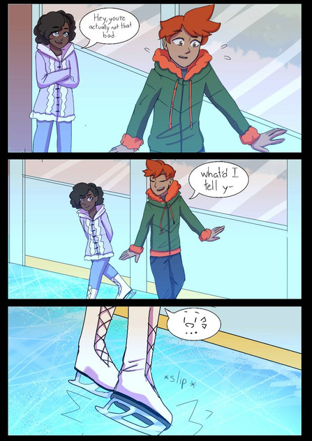 Try 2 Ice skating around trying to write out letters, but probably from where he was he couldn't see what was being written or didn't notice it was writtten and just thought it was a nice performance.