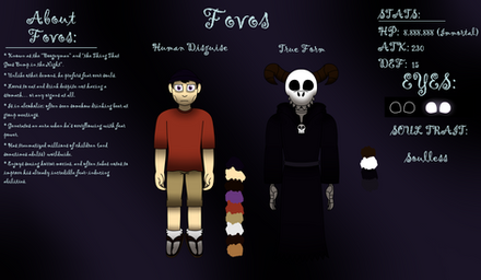 Whispers Entity: Due to lack of concrete information and various “theories” floating around everywhere there is no way to tell what exactly Whispers (Rook’s father) is; a demon, experiment/mutation, or an alien are some of the more common theories. However describing him is rather easy; Whispers has a body made of something like non-newtonian fluid, and can be seen as pretty much a type of "Goo". He is all 3 states of matter at once; solid, liquid and gas. His form is constantly evaporating and reforming and anything below his calves just pour onto the ground like an almost solid liquid that turns to gas and evaporates. There are various mouths located on his body and all of them can speak, usually in different voices. Sometimes they talk in unison and sometimes they talk to each other, depending on what the situation calls for. His eyes are not on his face and he only has one of them, which rests on his tie. He also only has 3 fingers and a thumb, the pinkie has a knife blade fused into it. He has one set of horns (which makes people believe he is a type of demon.). He is a master of illusions and is able to alter reality (at least in his dimension), usually resulting in bringing others into a dimension he created to play “Games” with them.