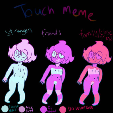 oh and i couldn't really show it from this angle but the red on her legs are meant to be the back of her legs. for some reason she really likes the back of her legs touched. as well as her neck and hands, though there's a reason behind both of them, and then her cheeks she loves having her cheeks touched (though not really squished) everything else is pretty self explanitory.