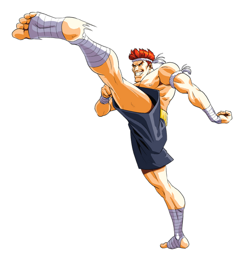 However the actual kick is based upon Street Fighter 3's jumping (non-directional, just up) hard kick. He does a fancy little twist with the kick.