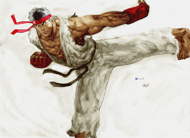 I think the washed out color is successful here, especially in the reds. And of course you did much justice to Ryu You oughta make a coloring tutorial someday.