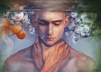 Is he drowning? Is he trying to say something? Up to you, but it was an image that stuck in my head after my dream. Kind of scary, kind of not. He could just be blowing bubbles.