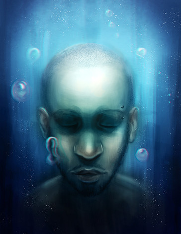 The eyes covered of shadow adds him that disgusted expressivity of drowning.The coluring is great,because with a little strokes you made a character and background very smooth like being shaded with an aerograph tool.