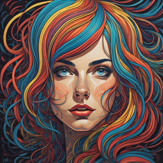#artwork #black #blue #colour #colourful #dark #darkart #face #female #fine #fractal #girl #graphics #hair #orange #paint #painting #portrait #red #splash #swirls #vector #wall #wallart #warm #woman #yellow #aiart #art #aiartwork