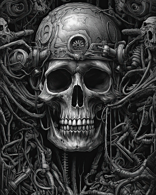 #album #artwork #cables #colour #cover #dark #darkart #death #detailed #etched #fine #fineart #goth #integrated #metal #muted #parts #portrait #poster #sepia #skull #trash #wallart #aiart #art #aiartwork #aiartcommunity