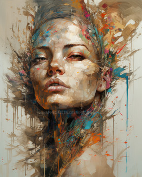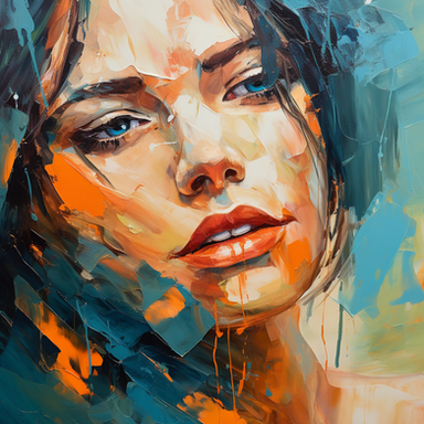 #artwork #beautiful #blue #cold #colour #colourful #contrast #cyan #eyes #face #female #fineart #girl #orange #paint #painting #portrait #splash #streaks #wallart #warm #woman #aiart #art #aiartwork #aiartcommunity