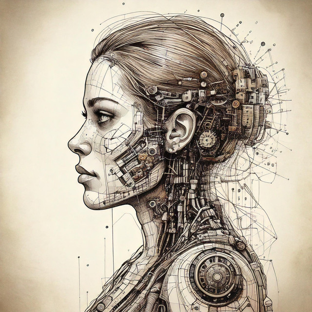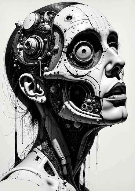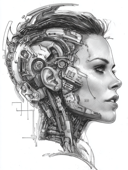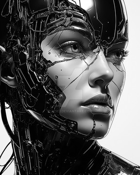 #face #artwork #cyborg #drawing #girl #portrait #robot #technology #wallart #aiart #aiartcommunity #aidrawing