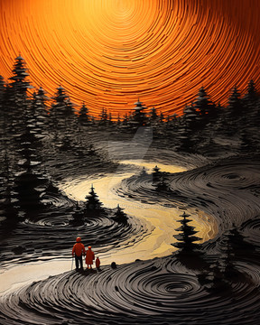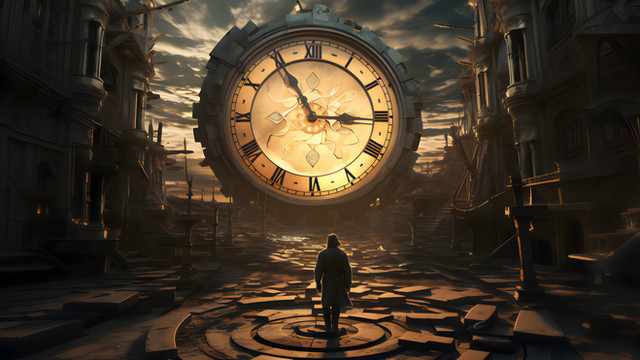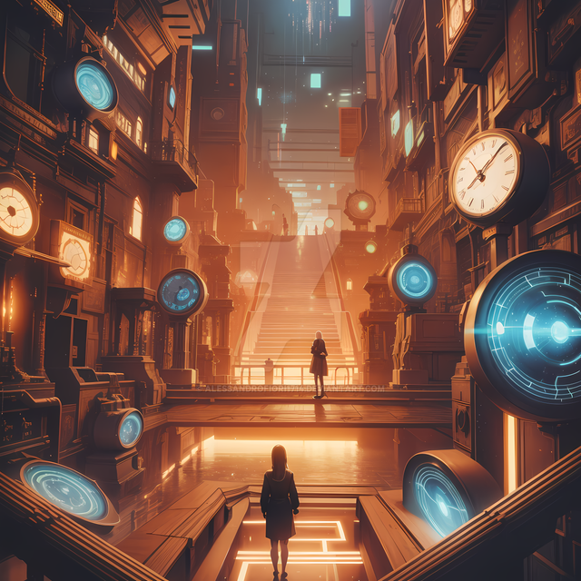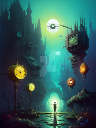 #artwork #black #blocks #city #clock #cyan #dark #darkart #eco #ecology #fantasy #figure #fine #global #green #lights #man #orange #plants #silhouette #standing #time #walking #wall #wallart #warm #warming #world #aiart #art