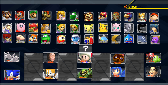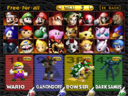 A Smash Bros 64 Roster made with Roster BuilderIt has the original 12 Fighters and 6 Newcomers