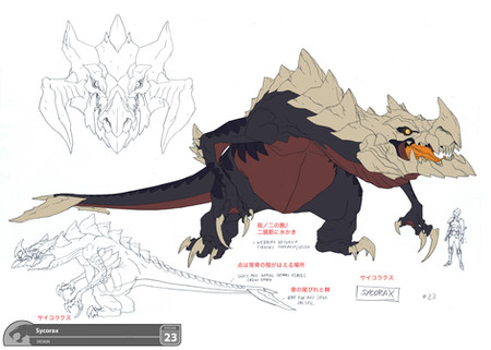 Description: My monster has 8 legs and spit blue fire from his mouth, his body is all black and covered with black strong spines, has more thorns on his head going behind his back to tip of tail.