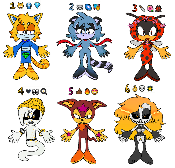 #anthropomorphic #cat #cute #furry #furryanthro #ghost #ladybug #raccoon #shadowthehedgehog #sonic #sonicfancharacter #sonicthehedgehog #sonicfc #adoptablesopen #openadoptables #pointadoptables #paypaladoptables #furryadoptable #setpriceadoptables #skeleton #tasmaniandevil #emoji #emojiadopts