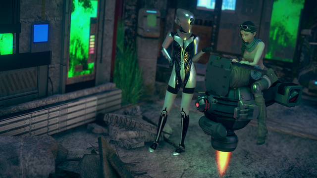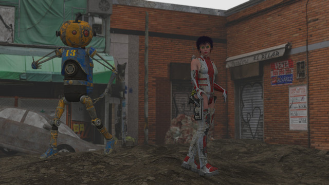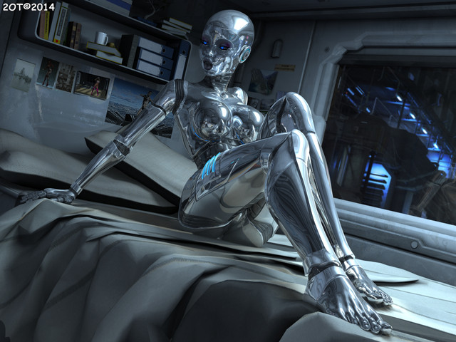 Gwen's been collecting an awesome arsenal of technological marvels And, her robot friend is deliciously shiny in the sun light