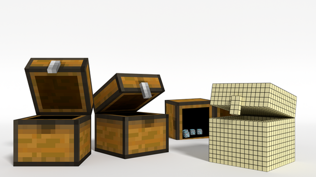 Modelo de cofre del videojuego "Minecraft" lanzado el 18 de noviembre de 2011.Añadi un esqueleto para la movilidad de la parte superior