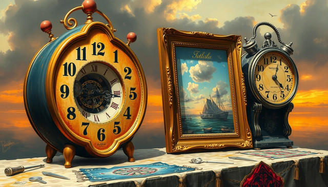 #fantasyart #surreal #digitalart #sea #steampunk #digitalpainting #reflection #clock #goldenhour #sunset #time #wallpaper #wallpaper1920x1080 #wallpaper2560x1440