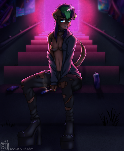 #anthro #cyberpunk #furry #hyena #neon #smoking #teeth #weed #yeen #furryanthro #furryfandom #furryfemale #sharpteeth #furrycharacter #furryartist