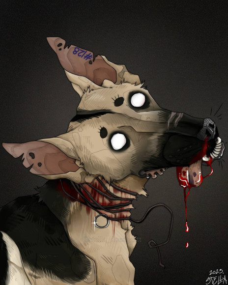 #digitalart #digitalpainting #horror #creepy #fanart #monster #anthro #bandage #burn #dog #furry #teeth #mouthwashing