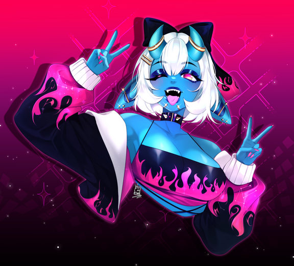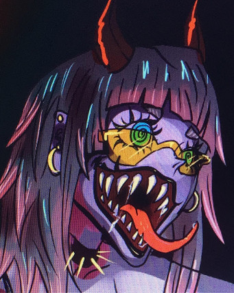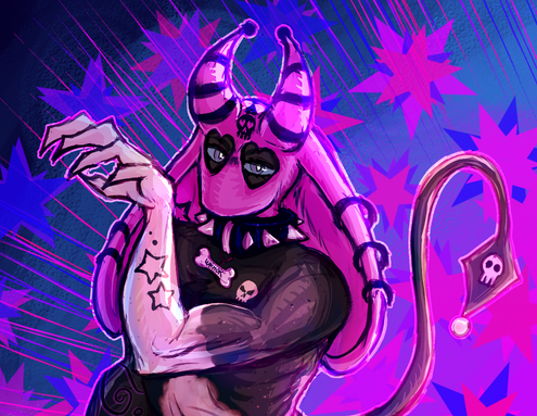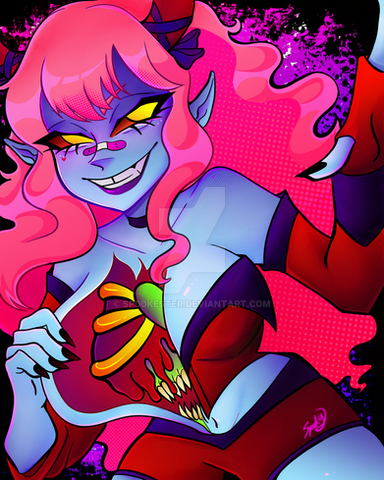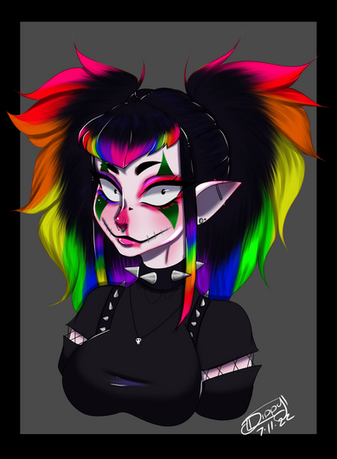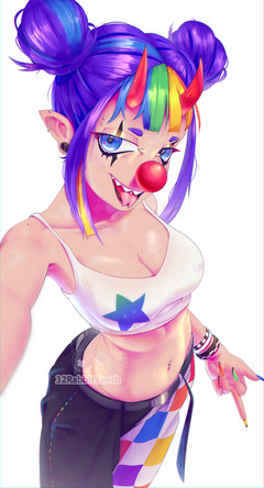 #digitalart #characterdesign #clown #cartoon #originalcharacter #monster #demongirl #anime #claws #clowngirl #colorful #girl #horns #jester #monstergirl #sharp #teeth