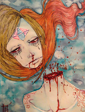 A parte la tecnica, meravigliosa (matite colorate!) e il disegno... ma quegli occhi, catturano quasi disperatamente l'attenzione, pur nella loro tristezza. Bellissimo!