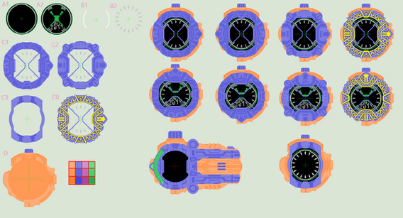 Shutsugen Ridewatch (シュツウゲンライドウォッチ Shutsuugen Raido Wotchi): Based on Kamen Rider Shutsugen Boku Damashii, this Ridewatch provides access to the ShutsugenArmor. Dated 2015 AD.